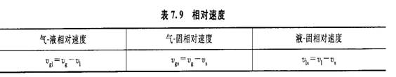 各個(gè)分相流體的速度之差稱(chēng)為相對速度,見(jiàn)表7.9。