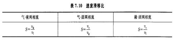 各分相流速之比稱(chēng)為速度滑移比S,見(jiàn)表7.10。