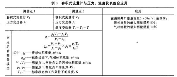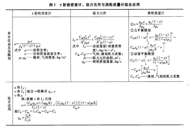 現舉三例:例1為y射線(xiàn)密度計、阻力元件與渦輪流量計的組合應用;例2為孔板與均速管的組合應用;例3為容積式流量計與壓力、溫度儀表的組合應用。見(jiàn)例表介紹如下。