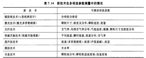 各種新技術(shù)已應用于多相流參數測量的情況見(jiàn)表7.14。