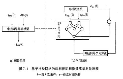 測量過(guò)程分兩個(gè)階段:學(xué)習階段和測量階段。學(xué)習階段是一個(gè)建立固相質(zhì)量流量黑箱模型的過(guò)程。在兩相流系統中采樣氣相質(zhì)量流量qmg和兩相流管程壓降ΔρT,同時(shí)離線(xiàn)標定固相質(zhì)量流量qms。采樣所得若干組數據即為神經(jīng)網(wǎng)絡(luò )的學(xué)習樣本。通過(guò)神經(jīng)網(wǎng)絡(luò )的學(xué)習算法調整神經(jīng)網(wǎng)絡(luò )的權系數,使其輸出與離線(xiàn)標定值qms的誤差滿(mǎn)足測量精確度要求。所得權系數