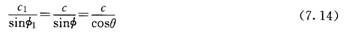 為克服聲速C波動(dòng)引起多普勒頻率的誤差,在超聲波發(fā)射器內增加塑料導向板。在塑料中聲速Cl和溫度無(wú)關(guān),如圖7.8所示幾何關(guān)系為