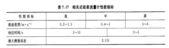 相關(guān)式紙漿流量計性能指標見(jiàn)表7.17 。