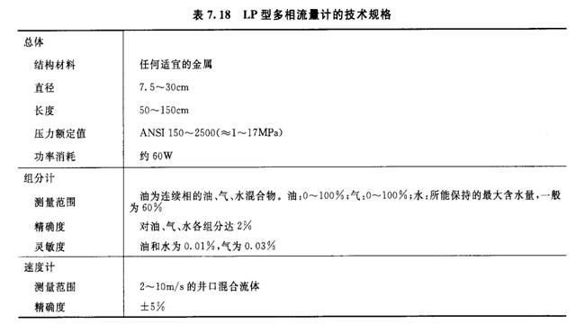 LP型多相流量計的技術(shù)規格見(jiàn)表7.18。