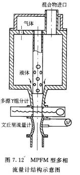 Framo公司的MPFM型多相流量計結構示意圖如圖 7.12所示[7.11],由在線(xiàn)靜態(tài)混合器、多源γ組分計和文丘里流量計等三部分組成。