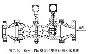 ISA公司的Scroll Flo型多相流量計是根據容積式計量原理,結合密度測量得出油、氣、水各相混合物的質(zhì)量流量。流量計結構如圖7.20所示。
