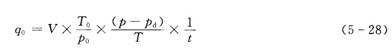 采用皂膜氣體流量標準裝置檢定時(shí),必須將體積流量換算為標準狀態(tài)下的體積流量qo,計算公式如下: