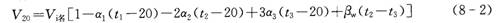 (9)如果標準量器,工作量器內的液體溫度和室溫不同時(shí),并在(20±)℃以外時(shí),按下式將工作量器的容積修正到溫度為20℃時(shí)的容積: