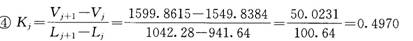 K的計算方法如下:設Lj、Vj分別表示第j點(diǎn)的平均高度和容積值;Lj+1、Vj+1及Lj-1、Vj-1分別表示檢定點(diǎn)相鄰上下兩檢定點(diǎn)的平均高度和容積值,則第j檢定點(diǎn)的K值為