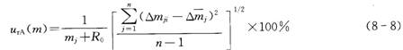 (2)計算靜態(tài)質(zhì)量法裝置的相對標準不確定度用公式(8-21)計算: