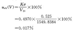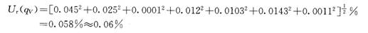 工作量器總的A類(lèi)相對不確定度Ucr(V),由其標定的最大A類(lèi)相對不確定度和標定工作量器用的標準量器的B類(lèi)相對不確定度UrB(V)組成,即