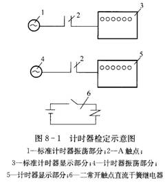 ②按圖8-1所示,連接計時(shí)器與標準計時(shí)器,接通兩者的電源,兩計時(shí)器的啟、停應保持同步。