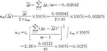 計時(shí)器檢測時(shí)間的A類(lèi)相對標準不確定度: