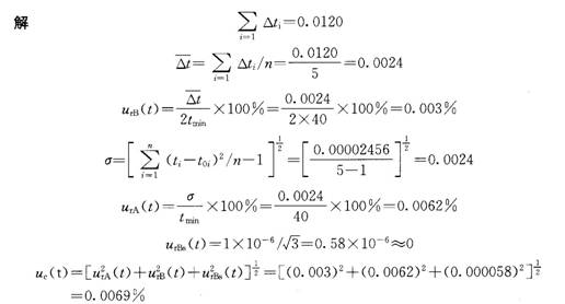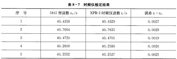 〔例〕用E312型電子計數式頻率計作為振源,用Dataprecision5845計時(shí)器作標準,其擴展不確定度UrBs(t)=1×lO-6檢定XPR-2型時(shí)頻儀,測試結果如表8-7,試確定B類(lèi)和A類(lèi)不確定度和XPR-2型時(shí)頻儀準確度。