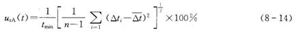 按公式(7-72)計算換入時(shí)間tli的A類(lèi)相對不確定度UrA(tl);按公式(7-73)計算,換出時(shí)間t2i的A類(lèi)相對不確定度UrA(t2)。