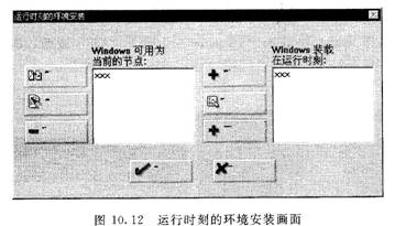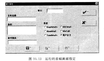 b.進(jìn)入運行組態(tài):按下"Runtime"按鈕,選擇Configure,然后把需要直接運行的任導加入到Windows tO be Loaded at Runtime窗口中。運行時(shí)的環(huán)境安裝畫(huà)面及首幅畫(huà)面指定分別如如圖10.12和圖10.13所示。